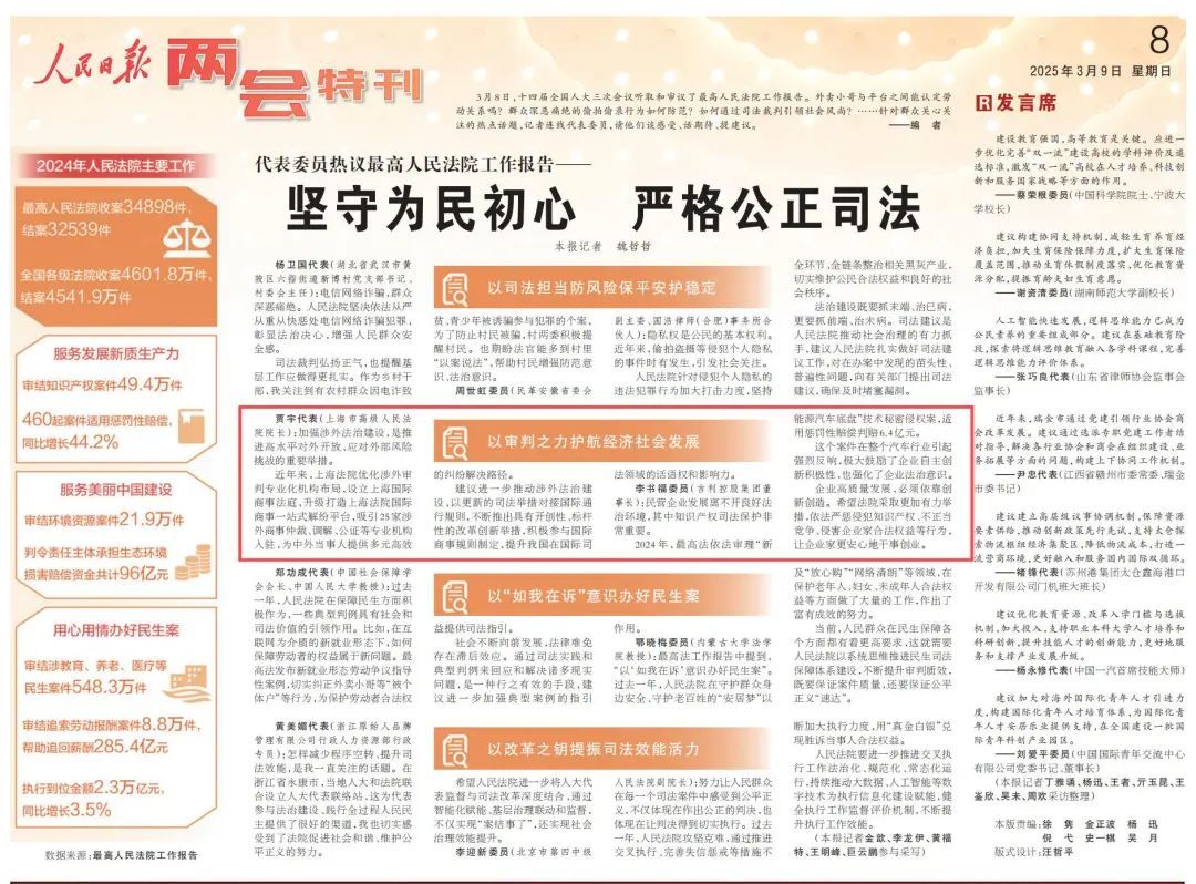 贾宇代表(上海市高级人民法院院长):加强涉外法治建设,是推进高水平对外开放、应对外部风险挑战的重要举措。