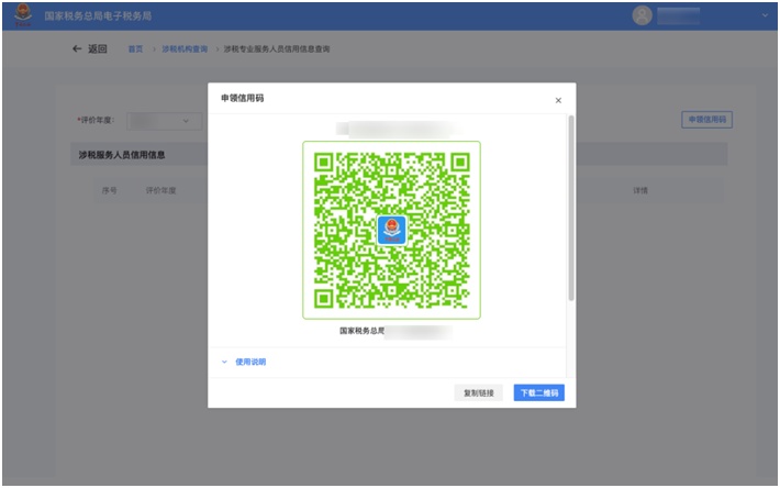 点击【下载二维码】,用户可以通过手机扫一扫查看涉税机构的信息详情。