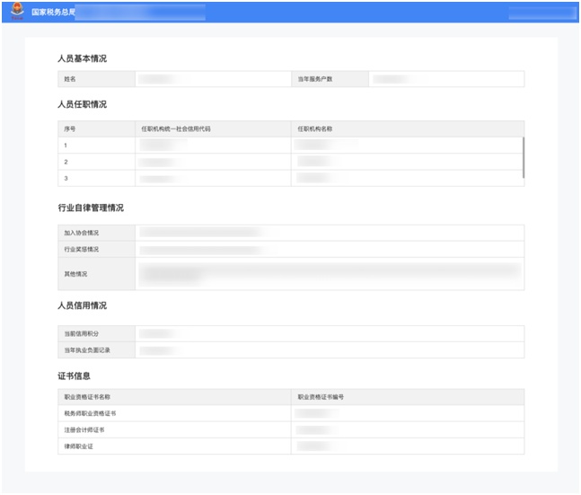涉税专业服务人员信用码