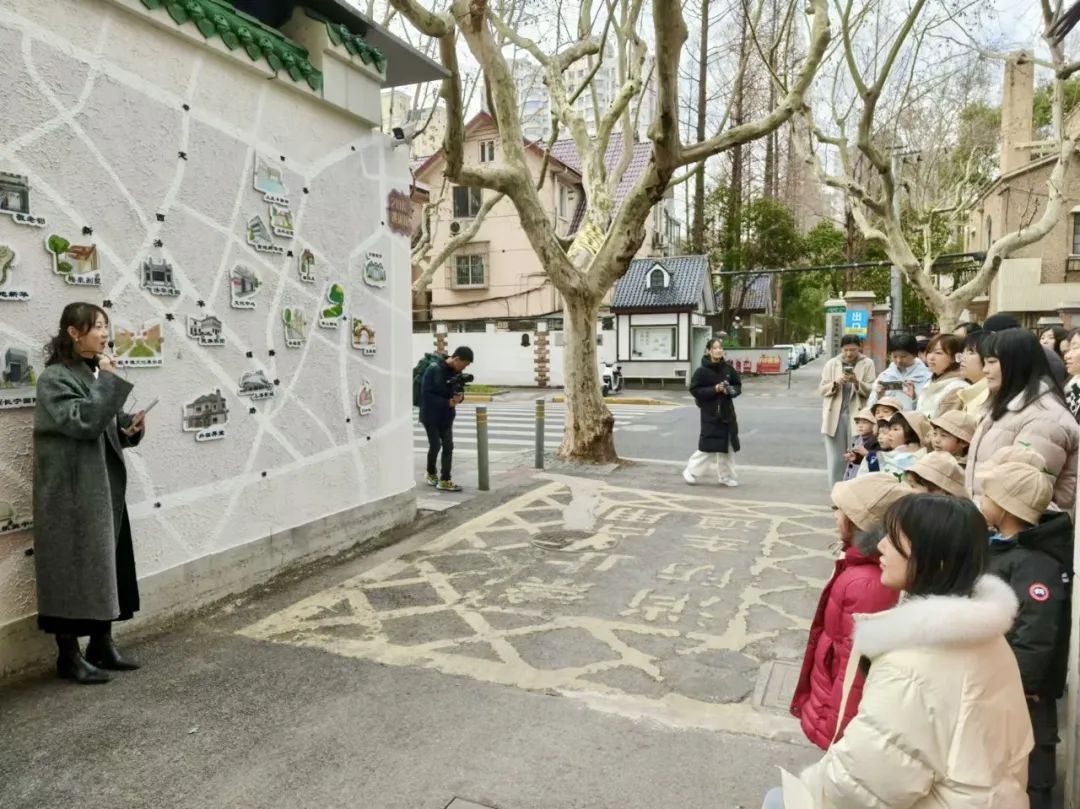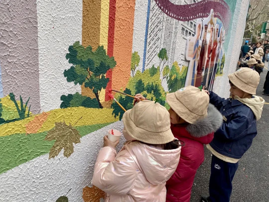 为了画出真正受到居民喜爱的墙画,设计阶段,番禺居委会工作人员就和专业设计团队一起深入调研,收集居民们的“金点子”。顾建祥等热心居民提议:“墙画不能只图好看,得能互动、有温度!”最终,设计方案融合了四季打卡、弄堂规约、便民设施等创意。新华路邮政支局、上海影城、链家、银星皇冠假日酒店等辖区企业还主动提供墙面修缮支持,并为设计团队提供了丰富的新华路历史资料,为墙绘注入文化厚度。