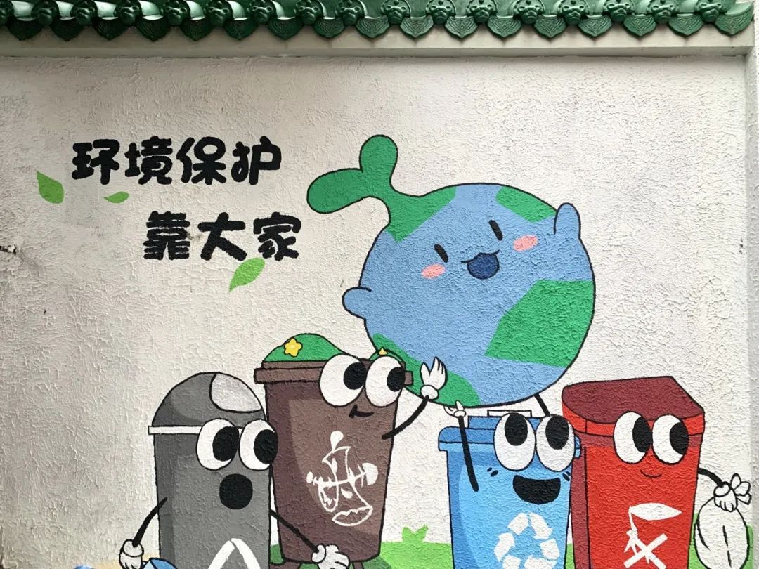 3月7日上午,新华路210弄格外热闹。社区少年儿童和辖区企业代表们手握画笔,一起在“垃圾分类”主题墙上勾勒出卡通地球的轮廓。
