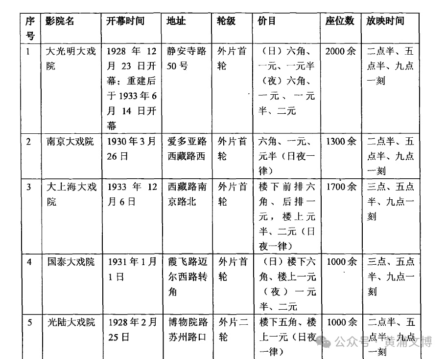 1934年上海电影院情况统计表