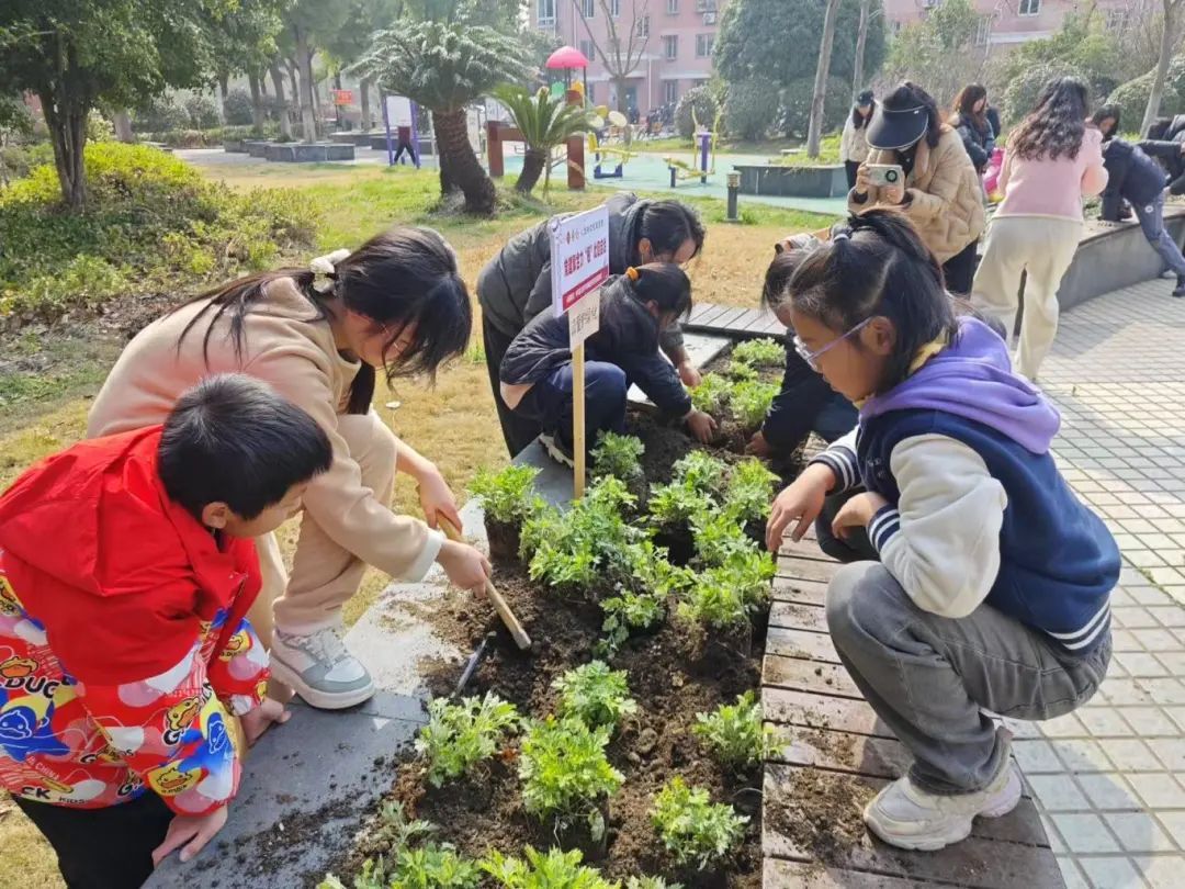 日前,外冈镇新苑社区的“心连新”草药科普园呈现出一片生机勃勃。黄金艾蒿、亚菊、百里香、石菖蒲等各类草药绿意盎然,居民们忙碌于园中,挖坑栽种、培土浇水,气氛热烈。居民袁佳敏向小嘉展示着手中的百里香,“这是我们第二次补种了,要让园子四季常青!”