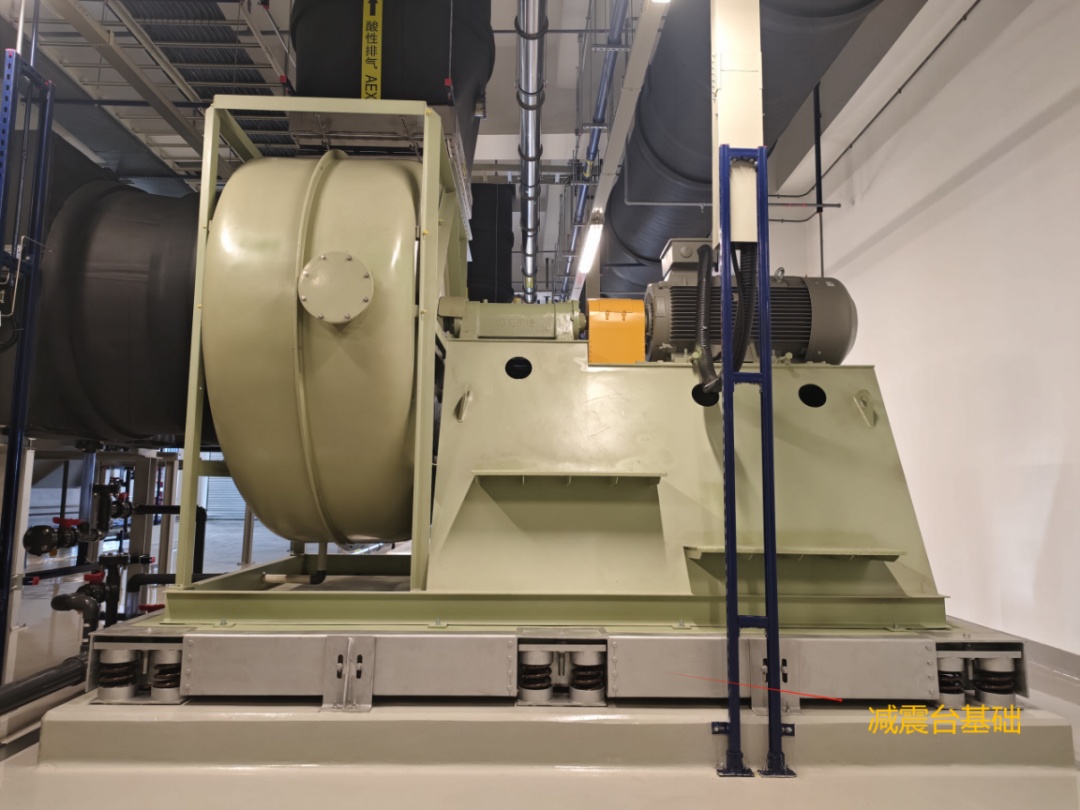 设置隔振或减振装置:在风机、循环泵、洗涤塔本体和风管的基础与地面、墙壁联接处设置隔振或减振装置,防止通过固体传播的噪声。
