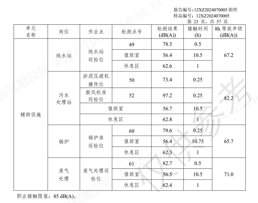 每年按照工作场所职业卫生的要求对废气洗涤塔和风机区域进行噪声检测,均合格。