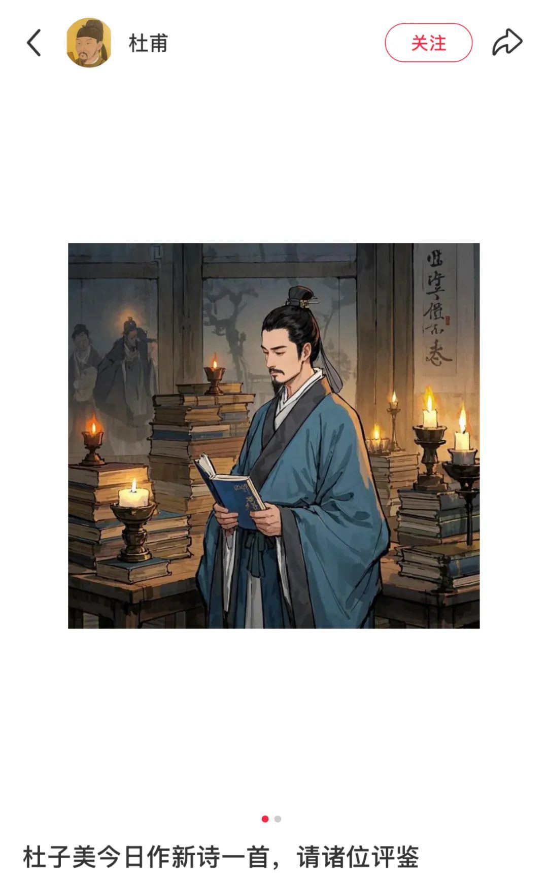 最近一段时间,“入驻”小红书的历史文化名人实在太多,大家叫得出名字的古代文化人几乎都“有了”自己的小红书账号。而像李白、杜甫、苏轼这类大文豪,其“账号”还不止一个,比如小红书上用户名叫“杜甫”的就有上千个。青年报·青春上海记者注意到,这些历史文化名人的“账号”大多都是在传扬历史文化,有的每天作一首具有该名人风格的古体诗,有的则是每日作画一幅,而且基本是国风题材的。一个“杜甫”账号几天前突然发文说“杜子美今日作新诗一首,请诸位评鉴”,起因是看了《哪吒2》,有感于其气魄如雷,悲观似海,便作诗《魔童闹海行》一首。其中“烽烟起陈塘,浊浪撼九垓。天生顽童逆天命,一念焚尽旧尘埃”之句,引得网友拍手称绝。