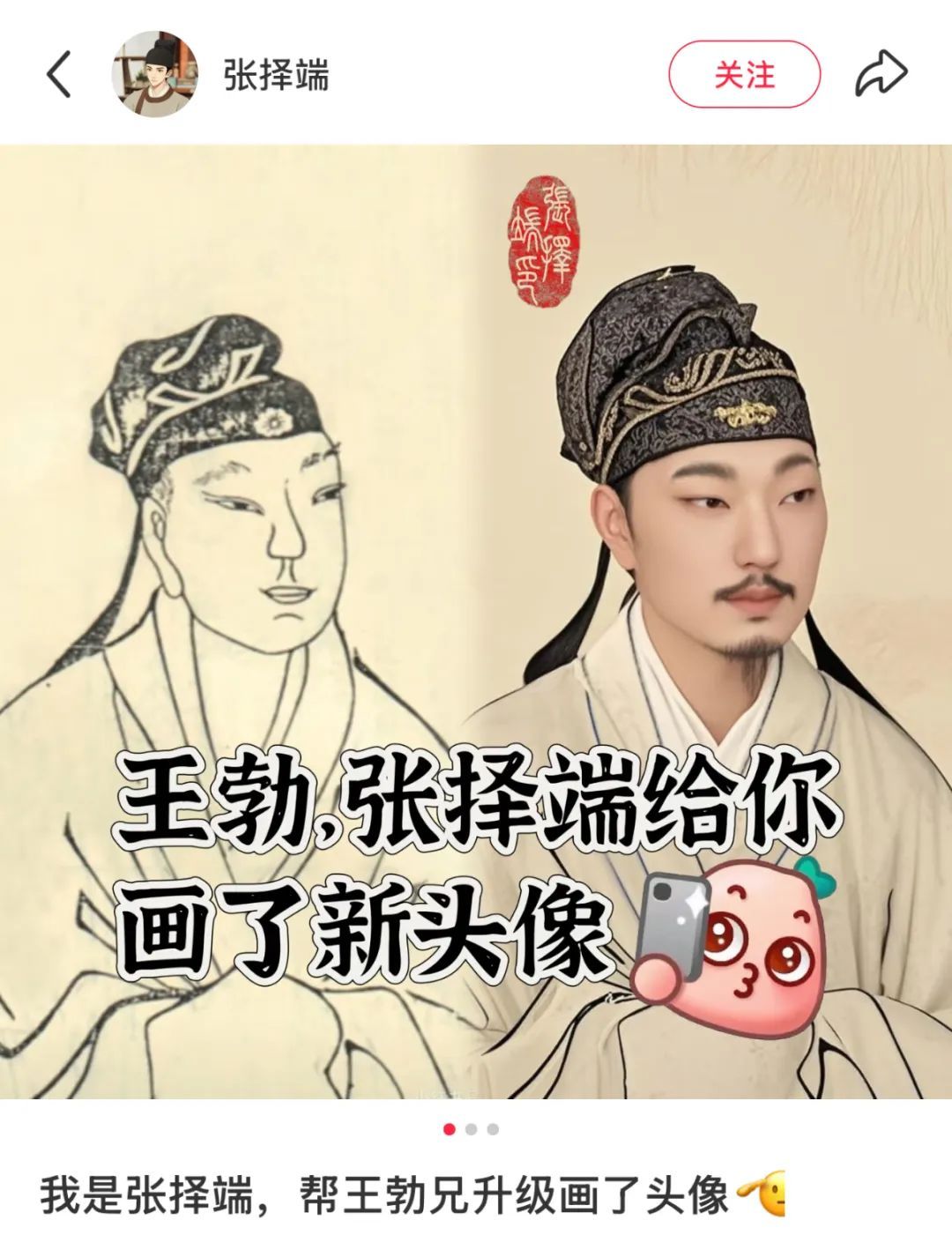 “大家好,我是张择端,今天正式入驻小红书。”1月22日,张择端突然官宣“入驻”小红书,引发围观。这位画了《清明上河图》、离开人间已经快1000年的北宋画家,没想到会以这样的方式“重回人间”。