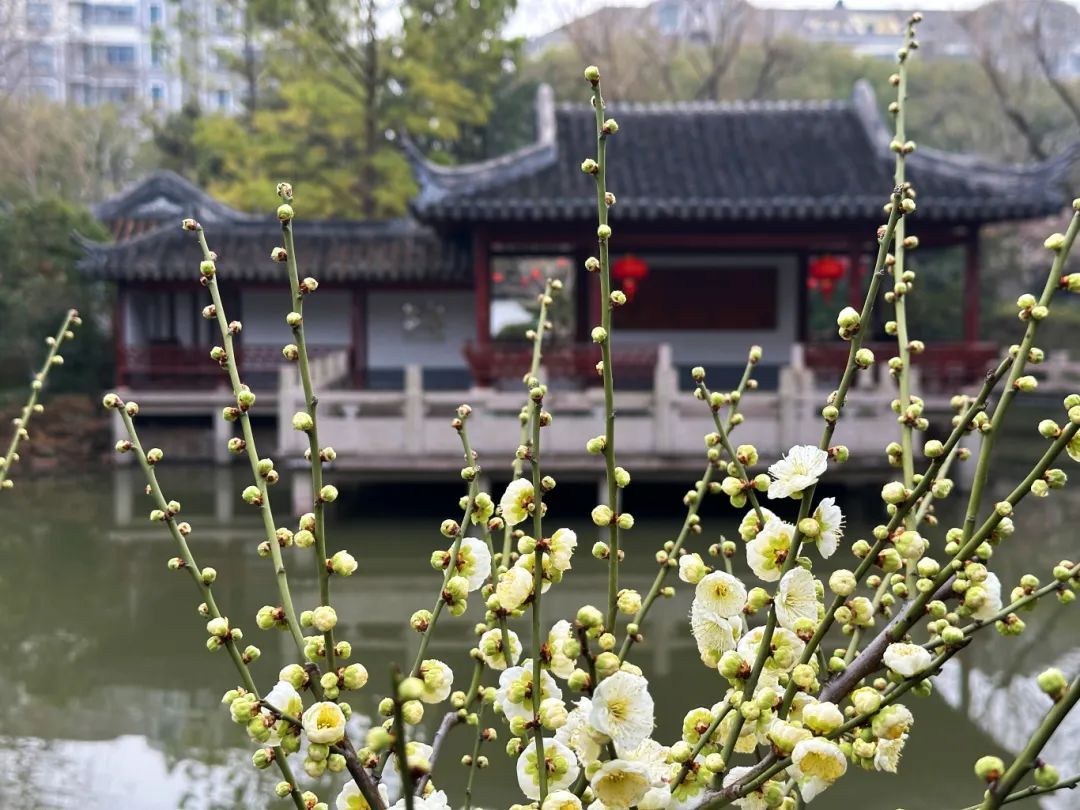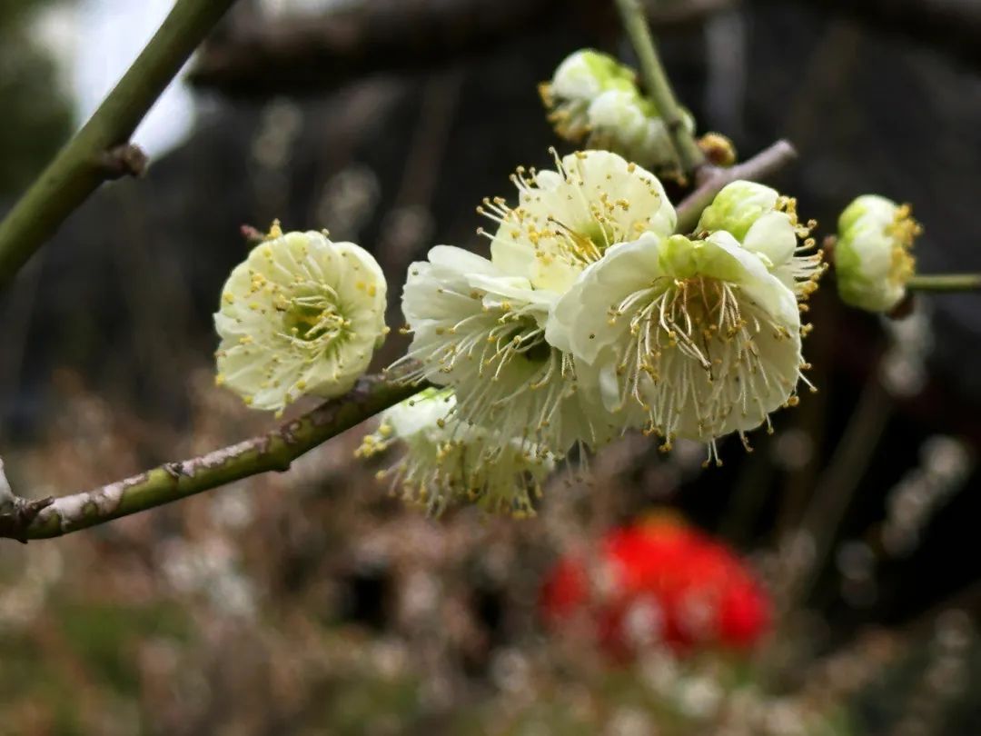 接下来,让我们跟着杨克元老师的图文,一起云游莘庄公园,看看今年的绿梅红梅开得怎样?