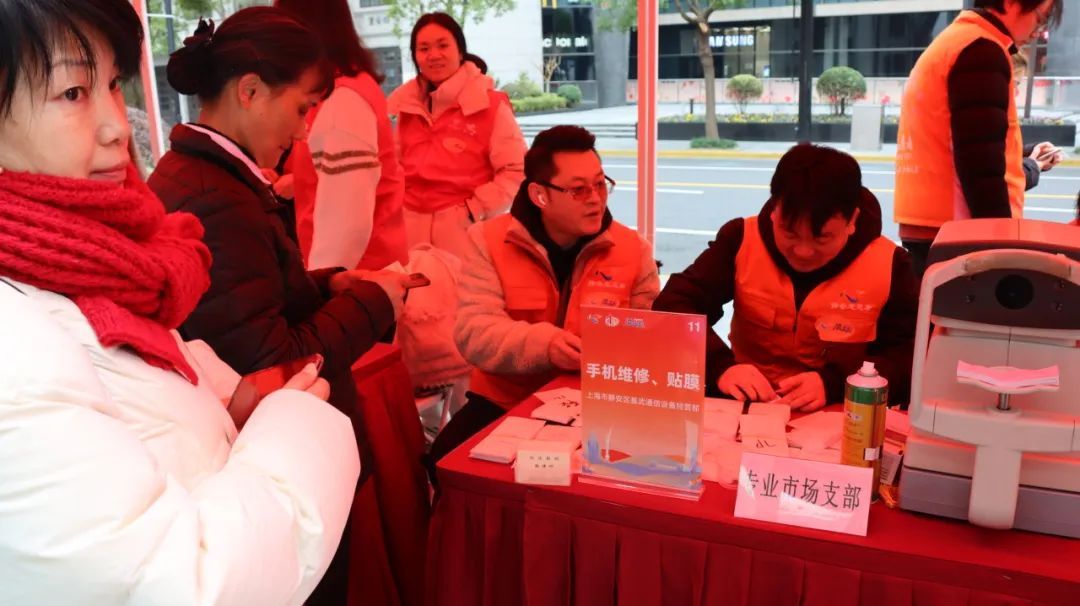 近年来,天目西路街道上海站地区专业市场党支部积极动员党员与商户志愿者“亮身份、亮承诺、亮服务”。结合行业优势,汇聚各方力量,打造“新‘市’力・‘益’起来”实事项目,长期为辖区居民、白领及新就业群体提供手机维修贴膜、视觉关爱等公益服务,不断提升党组织在基层的影响力与凝聚力。