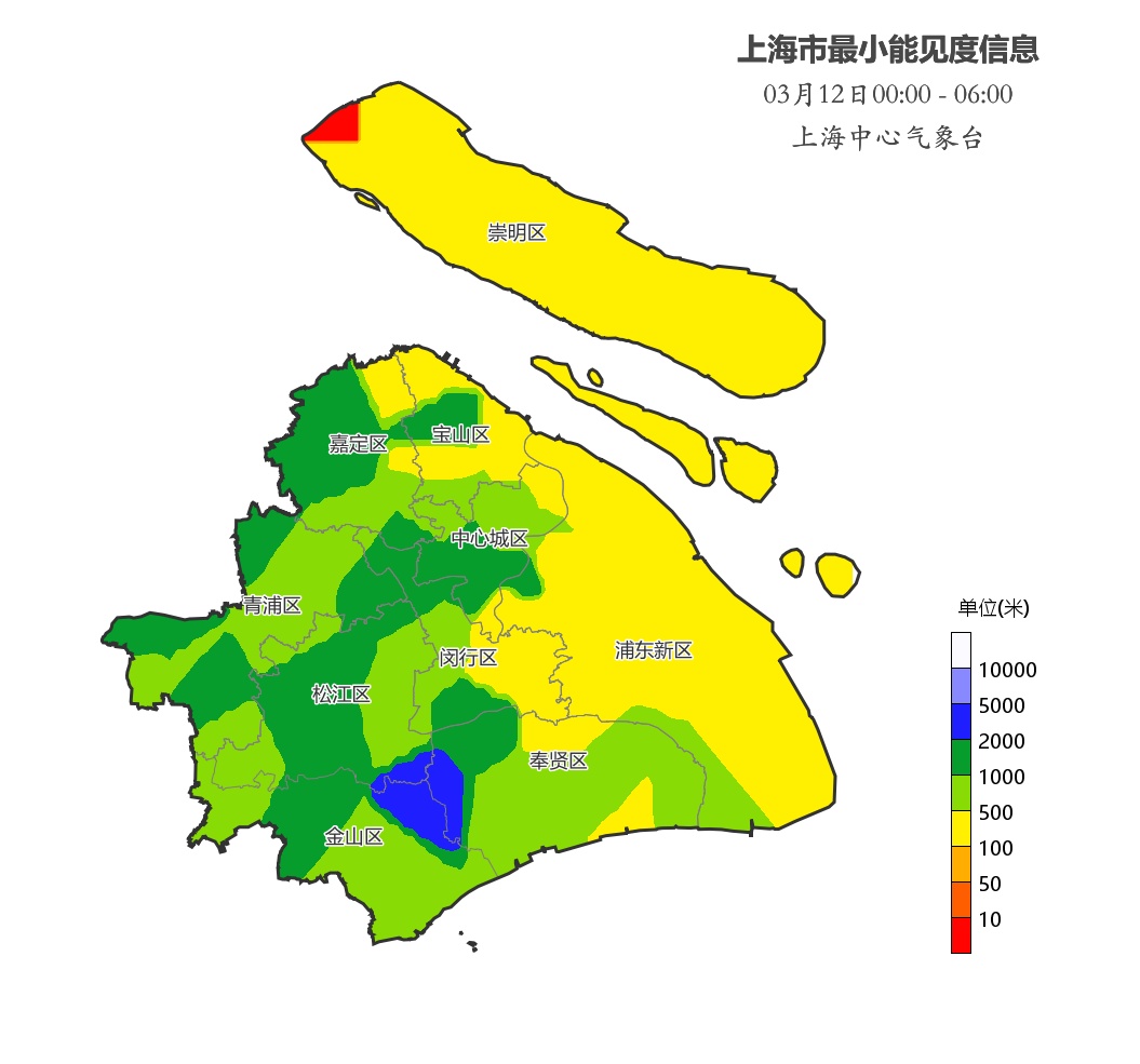 上海中心气象台2025年3月12日2时25分发布大雾黄色预警信号:预计今天上午以前本市大部地区将出现能见度小于500米的雾,局部地区能见度小于200米,请注意防范低能见度对道路交通的不利影响。
