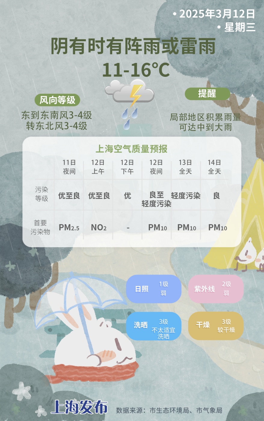 具体预报:今天半夜到明天阴有时有阵雨或雷雨,局部地区累积雨量可达中到大雨。明天全天气温在11-16度间,东到东南风,中午前后转东北风3-4级沿江沿海地区4-5级,相对湿度95%-60%。