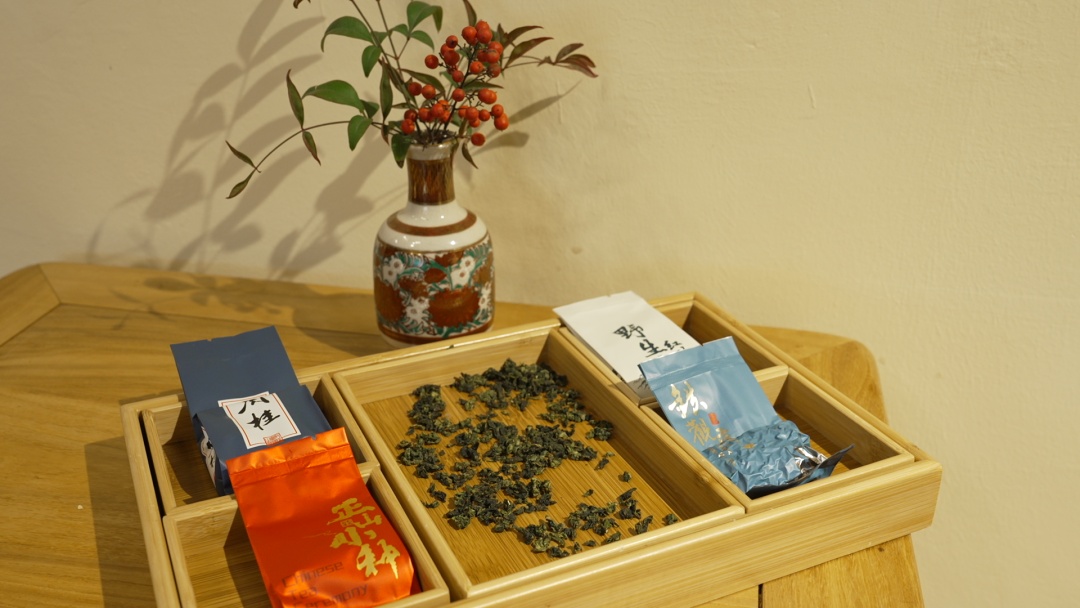 各类茶具、茶叶陈列其间,件件精致且无一雷同 ,一楼有三张茶桌,中间格架上还安置了秋千,趣味十足。
