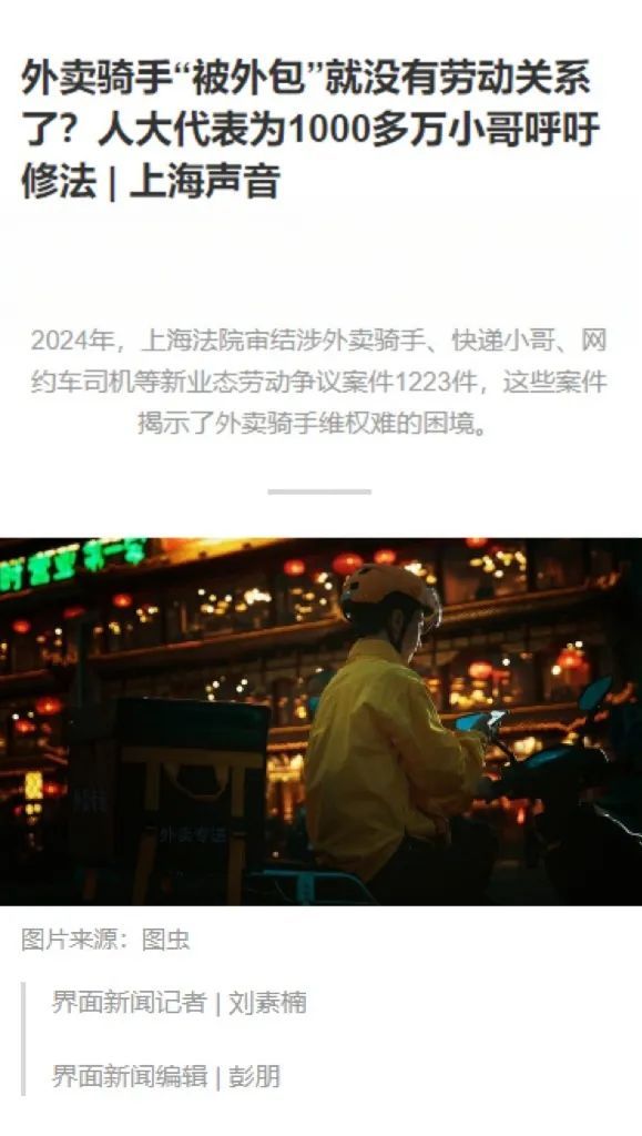 外卖骑手“被外包”就没有劳动关系了?人大代表为1000多万小哥呼吁修法