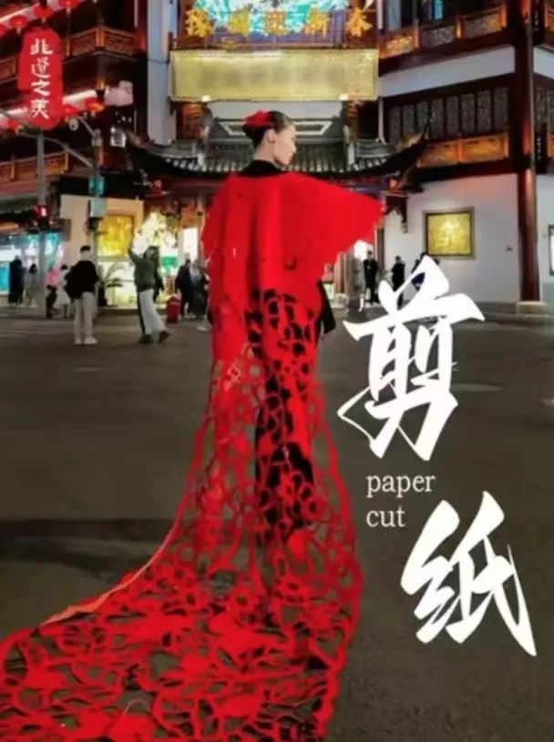 近日,“上海剪纸”非遗代表性传承人、徐汇区枫林街道剪纸传承队队员石勤玲和时尚模特旖旎来了一次跨界合作,一款匠心独运的剪纸华服被旖旎披在身上,走进沪上最具海派传统文化特色的商业中心——豫园,相关短视频发出之后,收获了众多网友点赞!