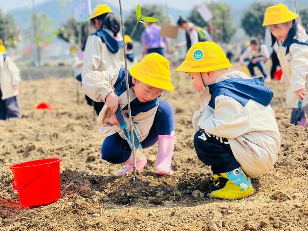 泰州泓园举办了以“‘植’此青绿,共‘树’未来”为主题的植树节活动。学生们拎着水桶,扛着铁锹,亲手种下株株新绿,许下“一起长成参天大树”的心愿。