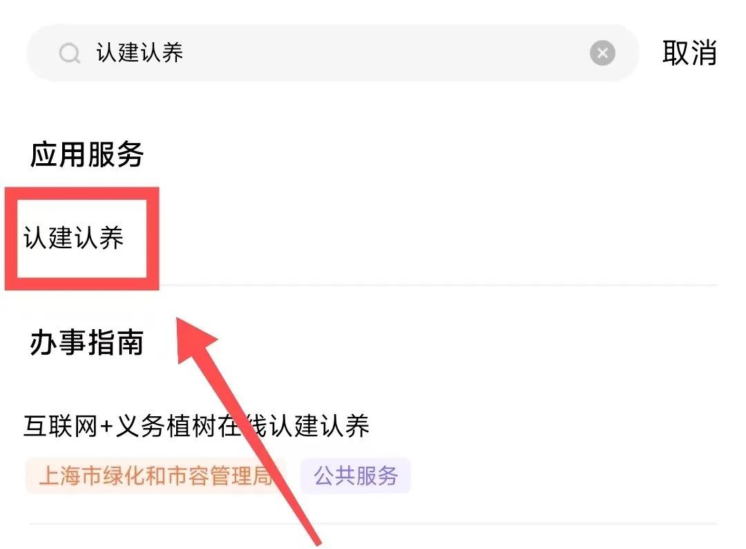 打开“随申办”,首页搜索【认建认养】进入服务。