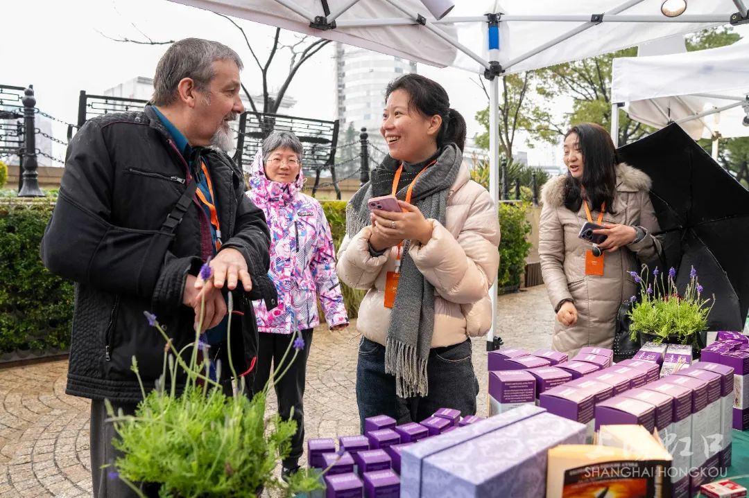 除了低碳花卉直供,现场还有香氛体验、植物基可降解手包、天然原料美妆个护、鲜花下午茶等“花艺+”复合业态,设置了可持续生活产品集群、有机轻食矩阵,以及非遗融合创新展示,通过“国际资源+本土实践”,打造从生产到消费的全链条绿色样本。北外滩街道办事处社区管理办主任林菁菲介绍道:“这个花市计划于节假日、周末定期举办。我们想以花市作为载体,组织周边居民、白领定期开展园艺沙龙、园艺知识培训等活动,通过政府引导、居民参与、企业共建,共同打造绿色生态社区。”