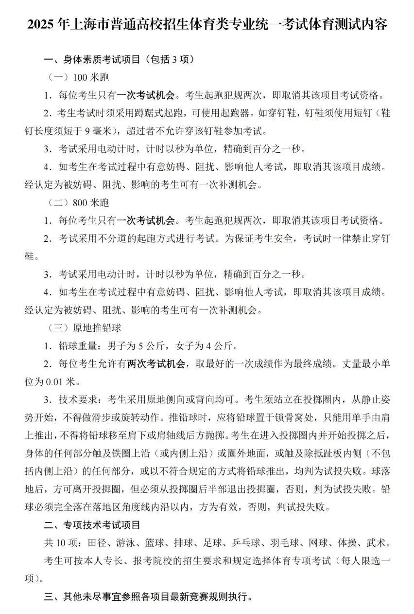 市教育考试院介绍,2025年上海市普通高校招生体育类专业统一考试将于3月15日(星期六)-16日(星期日)在上海体育大学〔考生从嫩江路1183号(北门)入场〕进行。考前请注意这些事项↓