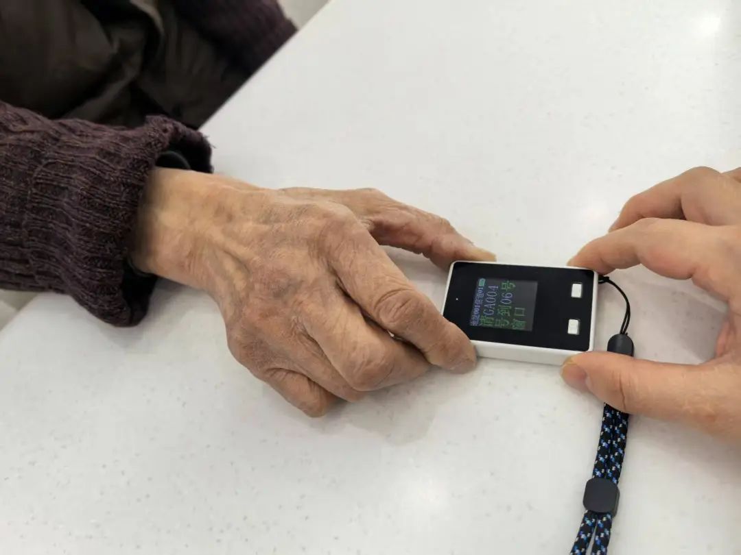 扫描二维码完成绑定后,震动提醒与语音播报双管齐下,将老人精准引导至对应窗口。