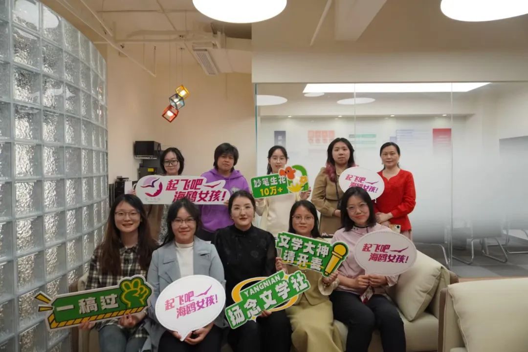 2016年,公众号进入了蓬勃发展阶段,正在华师大中文系读大二的姜晓玉看到了“内容为王”的发展契机。自由撰稿人、助农“带货王”……她用笔下文字书写了一段段创业史,也有了最初十几人的扬念文学社的雏形。2022年,在华东师范大学双创学院的推荐下,姜晓玉参加了由市妇联主办的第二届上海市女大学生创新创业大赛,并由此结识了“海鸥计划”策划人、上海市女企业家协会副会长蔡婷。当得知姜晓玉从大学期间便创立了写作团队,多年来一直带领女大学生们从事文案写作业务时,蔡婷便启发她,通过“海鸥计划”,吸引更多有才华、热爱文学的女大学生加入进来。目前“海鸥计划”已在56所高校建立了“海鸥湾”工作站,并在部分高校二级学院设立子湾和社团。一片片“海鸥湾”,孕育着一系列年轻人的创业就业机会,无数小小的梦想在此扬帆起航。借助“海鸥湾”,扬念文学社从华师大、交大走向更多高校。扬念主要承接新媒体文案、短视频脚本、人物专访、新闻稿及其他创意类文案工作。姜晓玉负责文学指导,根据自己多年的写作经验来做文字的把关工作。而蔡婷则从市场的角度来给予大家建议,比如,如何讲好产品故事,消费者更喜欢看到什么样的文字。“用文学的形式宣传商业,用商业的思路转化文学”在跑通了这样的商业模式后,扬念文学社孵化出一个个“董宇辉”式的成功带货案例。“合作”也是扬念文学社很看重的精神,团队有精细化的分工,通过学姐带学妹的方式,朝着市场化的运作靠拢。扬念以女大学生细腻的视角、默契的配合,获得了客户许多好评,也留住了很多“回头客”。