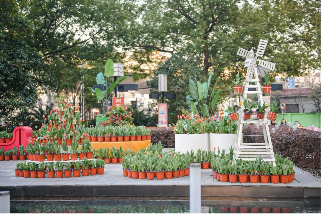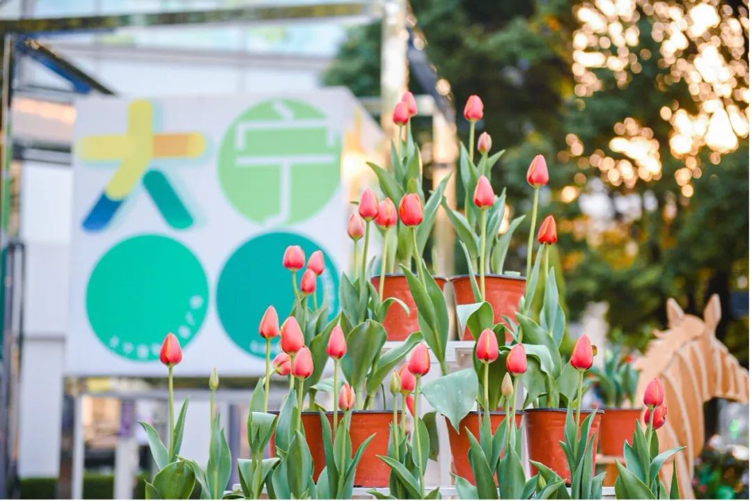 市民不仅可以在中央广场的花海中欣赏好看有趣的创意演出,还可以在8座的INNOSOCIAL街区与众多花艺装置打卡合影,风车、小鹿、单车……每一样都散发着活力氛围,放松休息时也将被郁金香包围。还有南北广场的花海,随手一拍便是氛围感大片。
