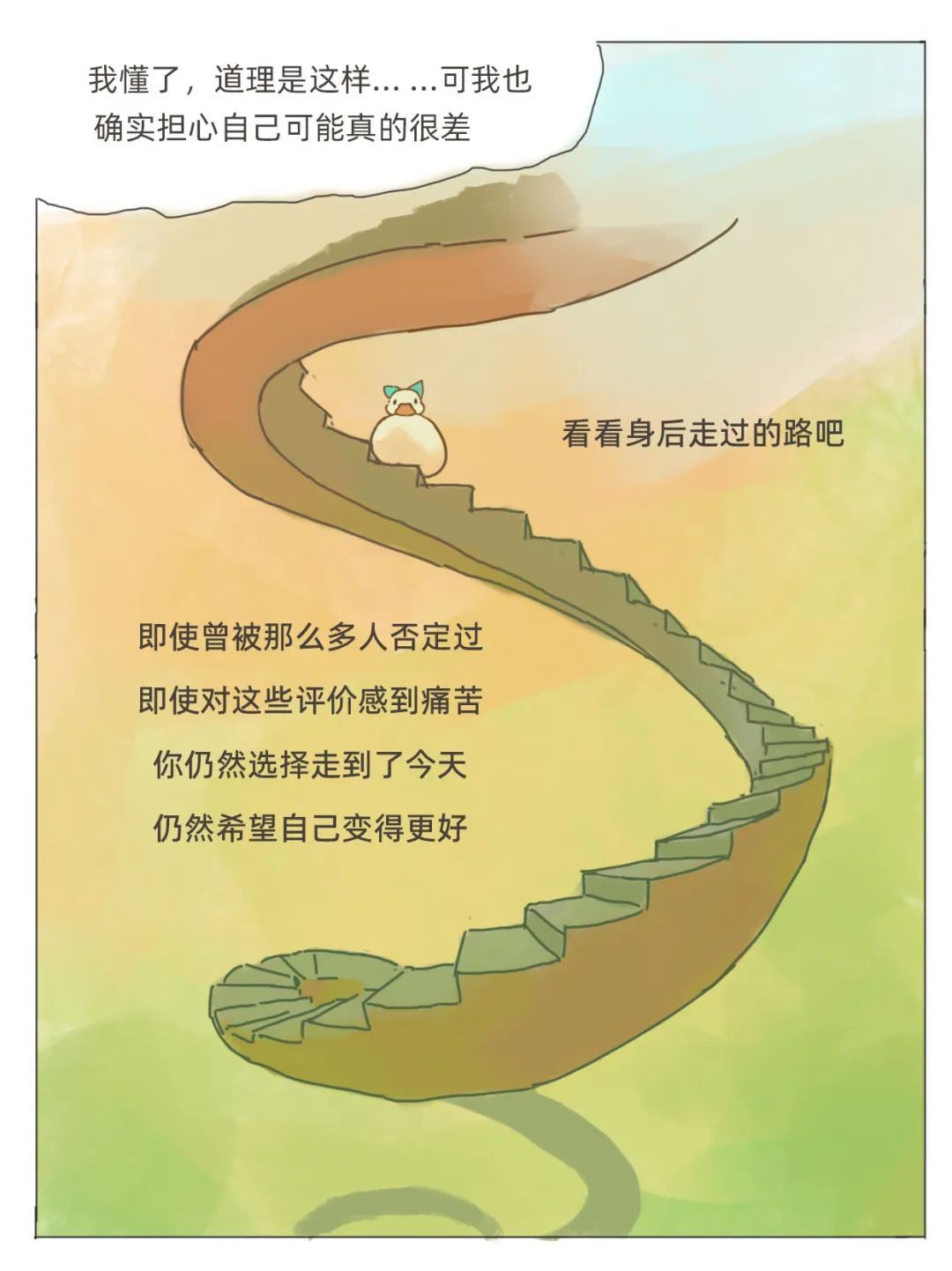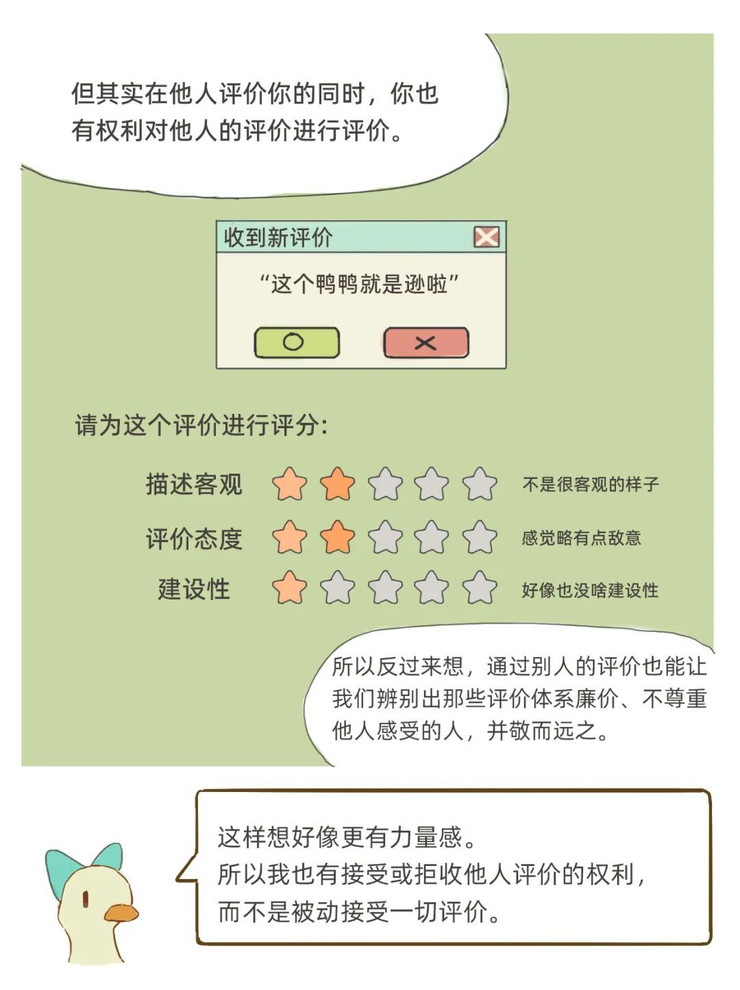 今天带来一幅治愈系漫画,聊聊“如何对待来自他人的评价”。