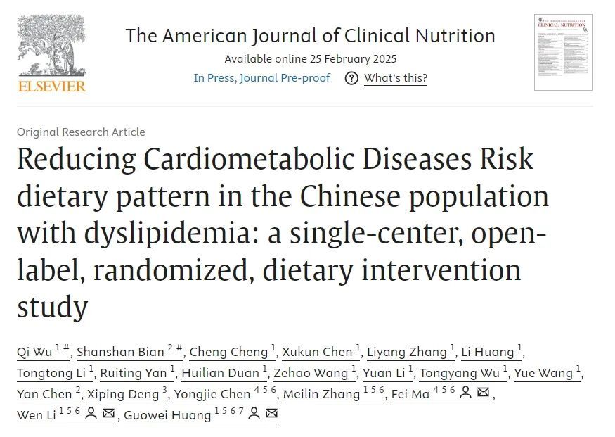 ①Qi W, Shanshan B, Cheng C, et al., Reducing Cardiometabolic Diseases Risk dietary pattern in the Chinese population with dyslipidemia: a single-center, open-label, randomized, dietary intervention study, The American Journal of Clinical Nutrition,2025, ISSN 0002-9165.