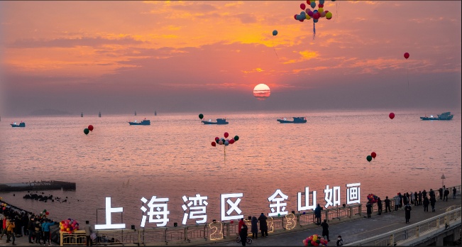 在金山城市沙滩凭海临风,极目远眺,伴随着一缕希望的暖阳,让你感受到金山如画的美,也带来了人们的无限希冀。
