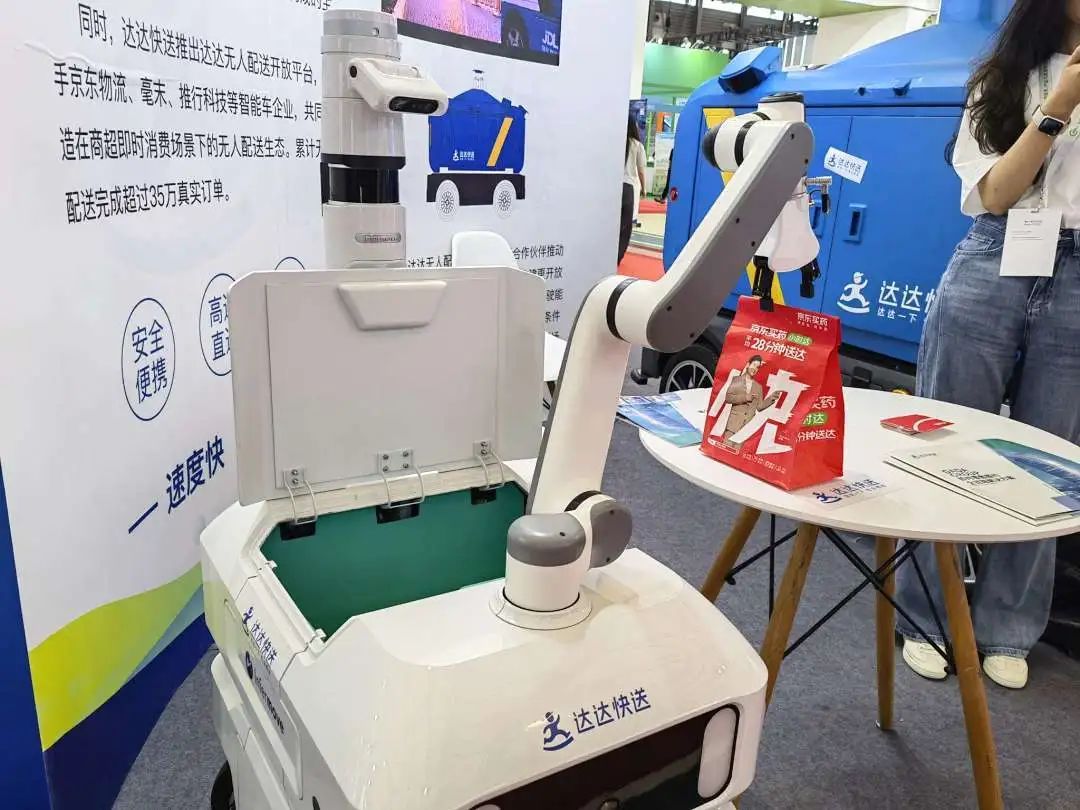 2024年,达达首款带机械臂、有具身智能技术的无人车已经亮相世界人工智能大会。达达无人配送开放平台携手智能车企业,共同打造商超即时消费场景下的无人配送生态,累计完成超40万订单。