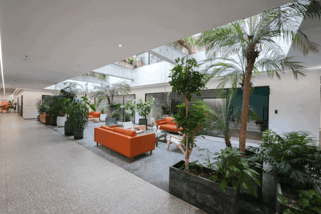 西虹桥德必易园以“城市中的无边界花园”为设计理念,打造了近万平方米的绿化景观,包括户外、中庭、天台及天井花园等,同时,园区引入了占地约5000平方米的洛克体育公园,以及“三餐四季”白领餐厅、德必斯维派人才公寓等高品质商业配套,形成“园区、街区、社区”三位一体的“创新微城”,这些全面的商业设施不仅服务于园区白领,也向周边居民及社会公众开放。