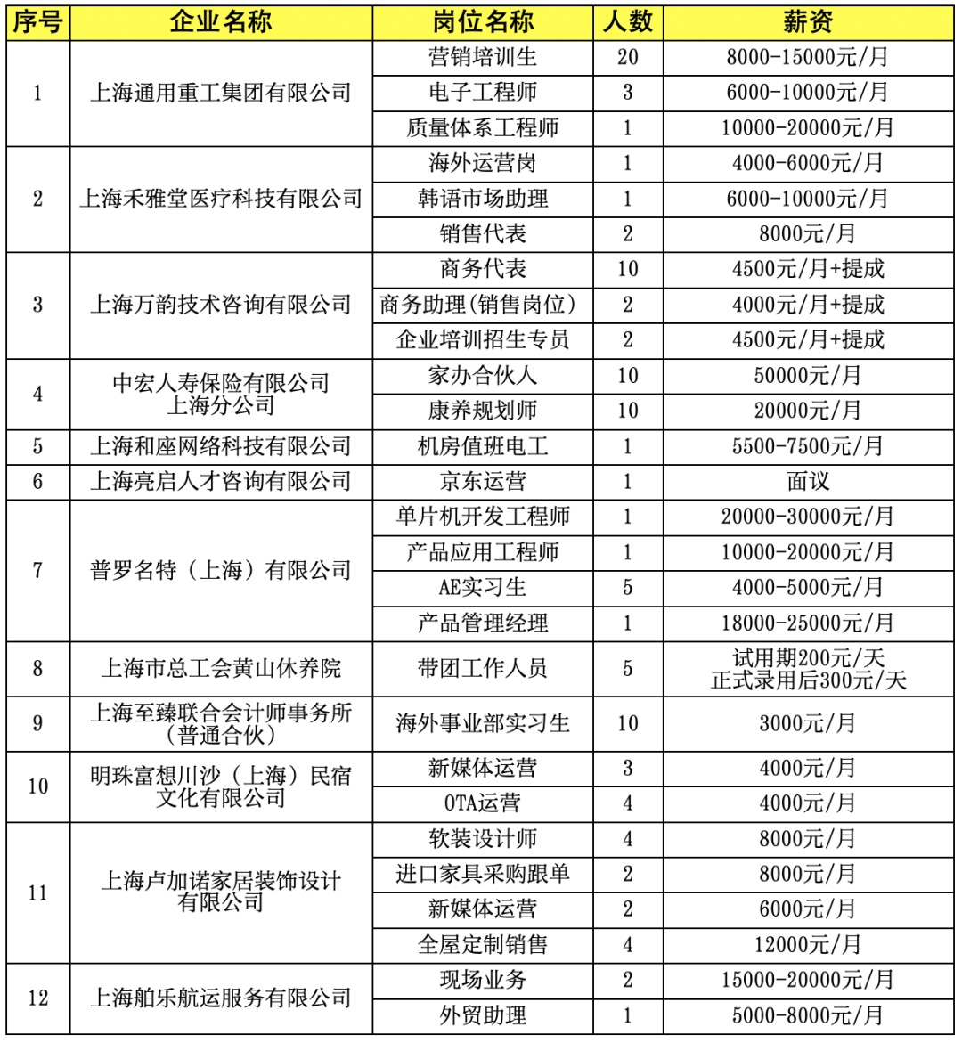 精选12家企业27个岗位招109人