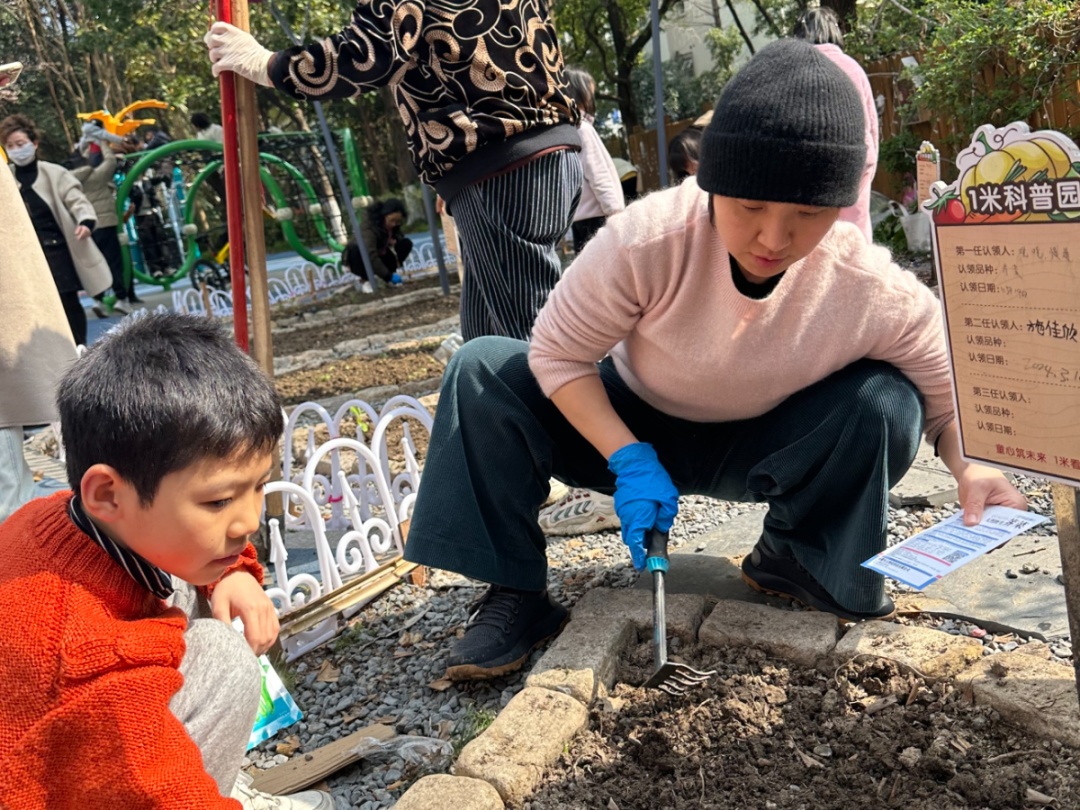 又到一年播种季,近日,凉城新村街道秀苑小区内的共享菜地“一米科普园”,又迎来了新一批“主人”。这个小小的科普园深受社区居民欢迎,认领启事在社区小程序上一经发出,15个名额就被一抢而空。