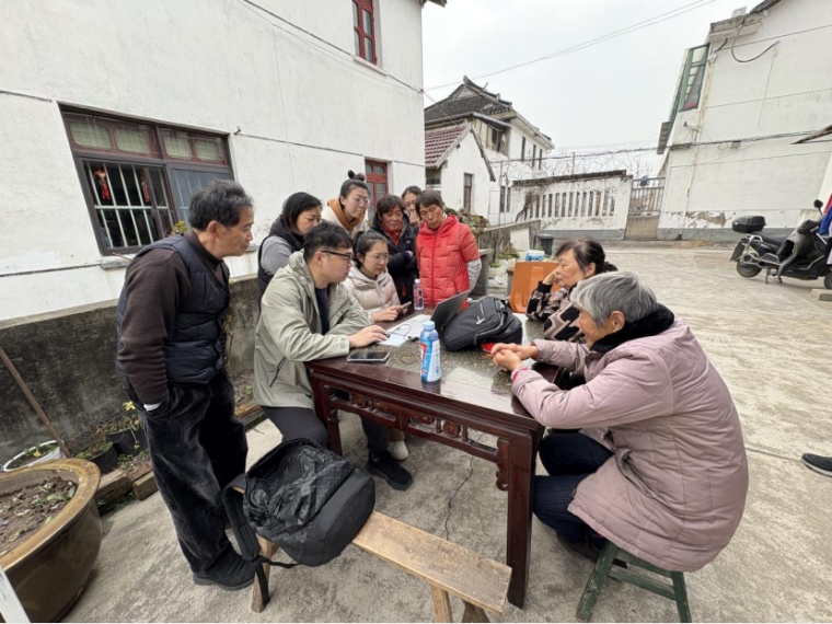 新年伊始,来自上海市城市规划设计研究院和同济大学建筑设计研究院(集团)有限公司的设计师们就在村委的协助下召开了村民动员会。规划师为村民宣讲“沪派江南”行动和规划理念,通过讲解青龙文化唤醒他们对白鹤镇的地域认同和文化自信,同时交流曙光村近期实施设想,就体现宋式美学的整体风貌和建筑风格等征求公众意见。建筑师为村民详细解读农民建房相关政策,就村民关心的资格权、宅基地建筑面积、高度和层数管控等问题一一解答。随后,针对有建房需求的村民开展了详细的问卷调查座谈和深入的座谈,了解了村民对于农具房、停车、晾晒空间、租住两用、四代同堂等具体的需求。3月初,“三师团队”又带着初步方案再次来到村民家里挨家挨户征求意见,为2个组团共12户村民量身定制建房方案,合理安排组团内空间布局,优化交通组织,实现公共空间利用效率和居住环境整体提升。