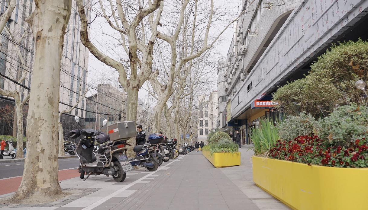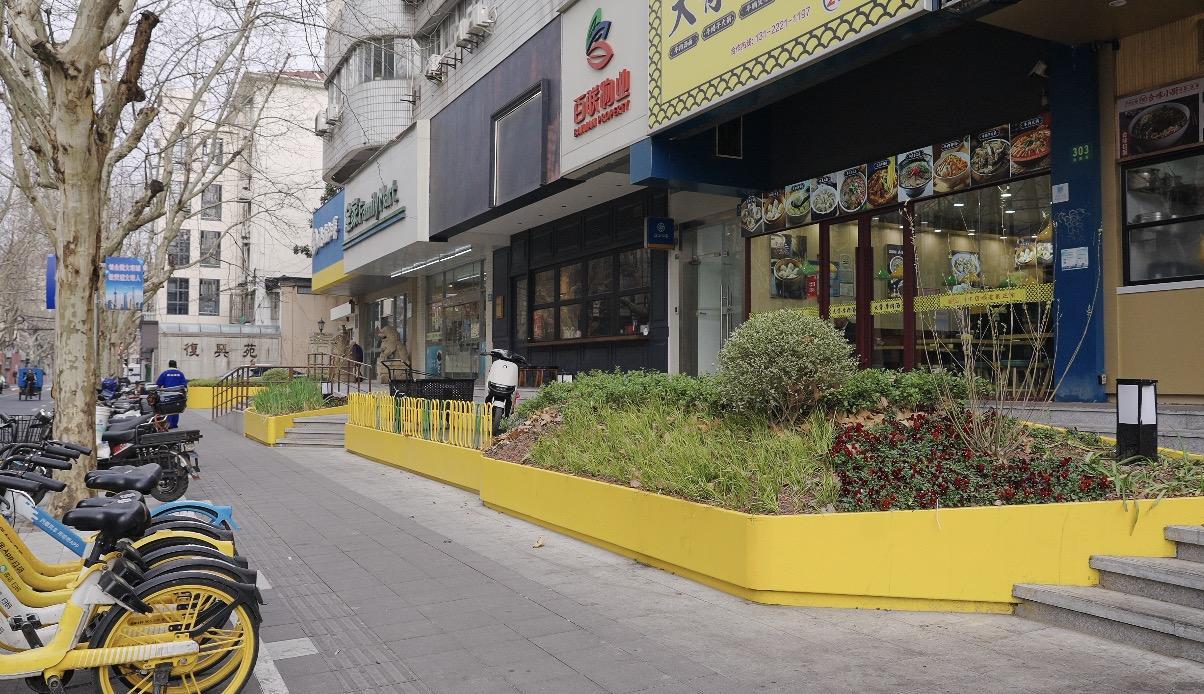 为了让居住在淡水路周边的居民生活更便利,近年来,淡水路融入了很多适老化改造。在合肥路淡水路口,原本人行道被非机动车停放占据了很大一部分,加之沿线花坛,行人很不方便,此次“一街一路”街道与物业等部门沟通协调,将原本建筑“红线”内缩60厘米,使得人行道既能让市民有序停放非机动车,也方便沿线商家营业。如今合肥路淡水路口诞生了一处花坛景观,很多路过的市民都表示,“干净整洁,心情也好了。”