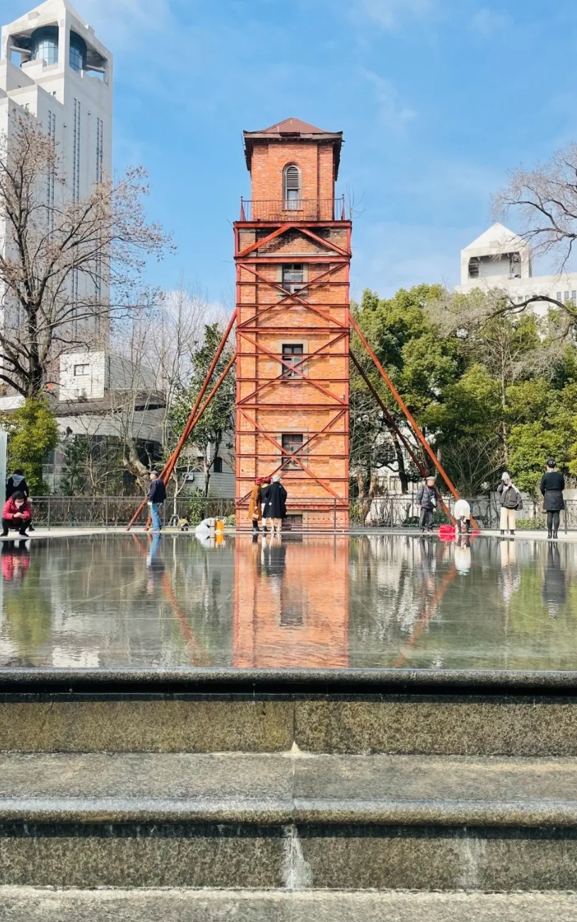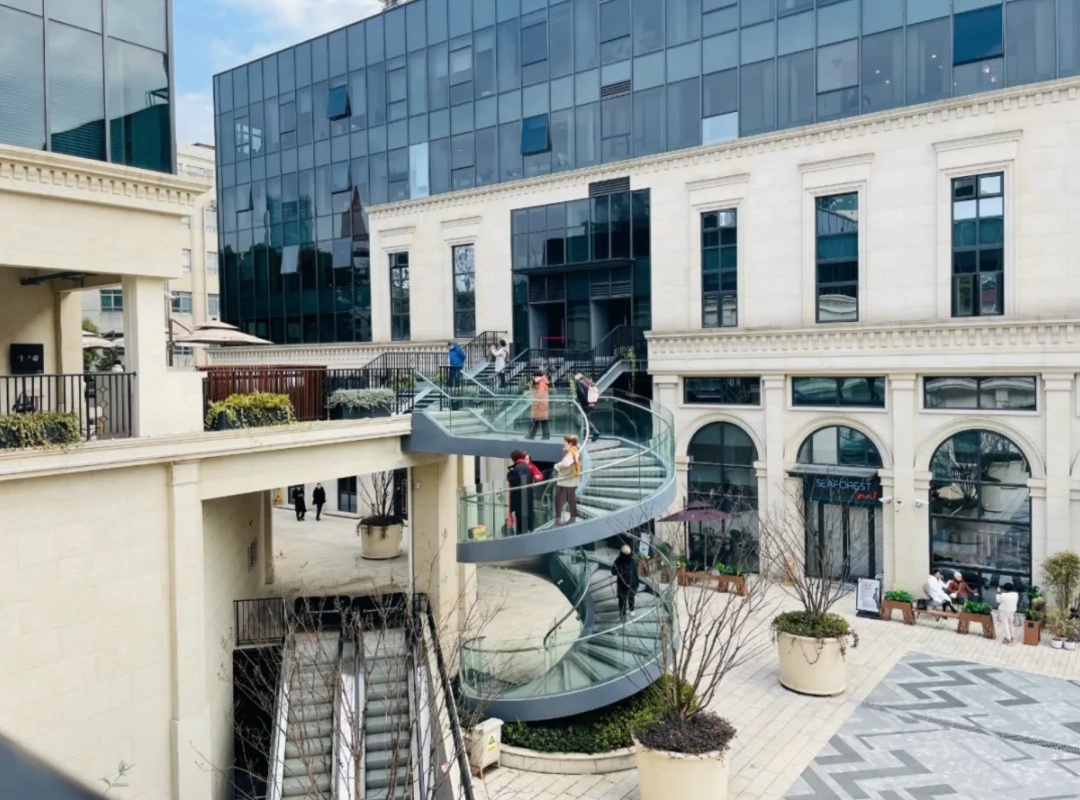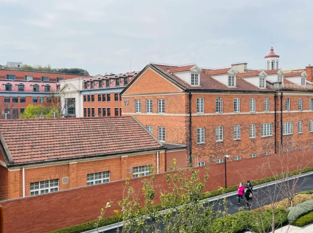 进入街区之后,就是一个开阔的广场,仿佛进入欧洲某个小镇。两个楼梯将两栋小楼连起,但上楼只能通过旋转楼梯。上到二楼,这个高度拍照正好!不论是拍中央广场和新建筑,还是一旁的美童公学,都比从地面拍更加容易构图和出片。