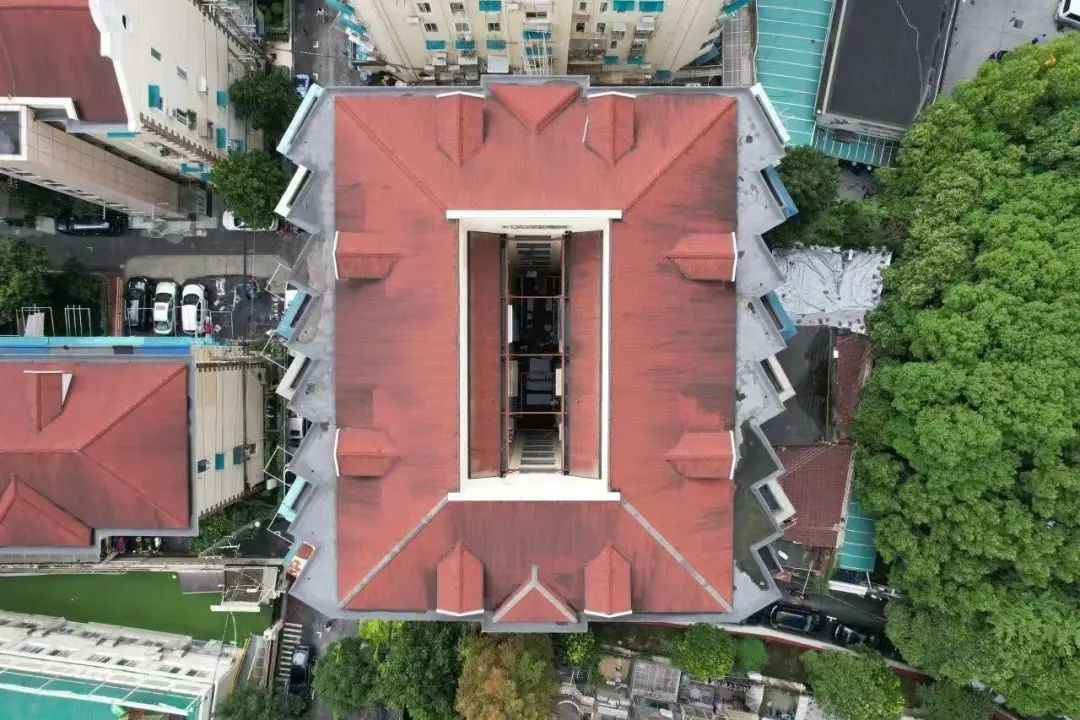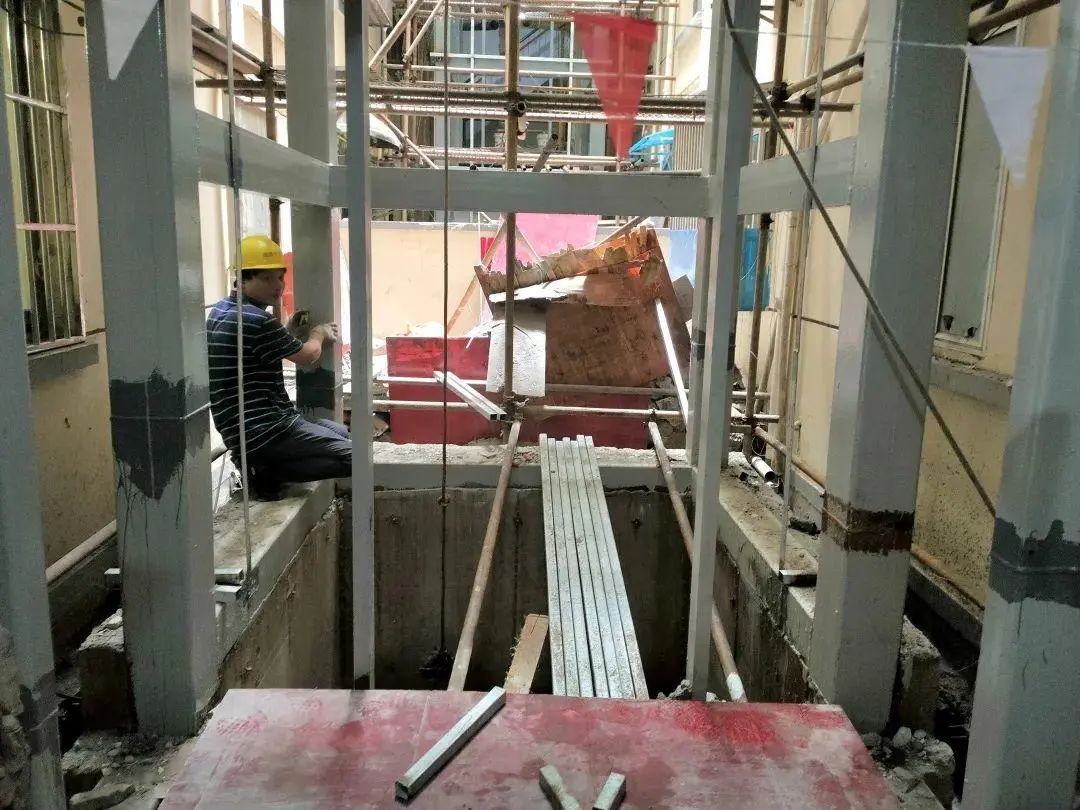 施工阶段更显“绣花功夫”。大型机械无法进场,施工队用滑轮组将建材吊至六楼,再通过人工“蚂蚁搬家”转运。随后,陈艳组建党员监督岗,在噪声最大的混凝土浇筑期,逐户上门协调施工时段。最终,在施工单位纯人工的作业下,历时近半年时间,终于完成了全市首台内天井加梯。当电梯轿厢终于嵌入天井时,陈艳感慨道:“这就像给文物做修复,容不得半分误差。”