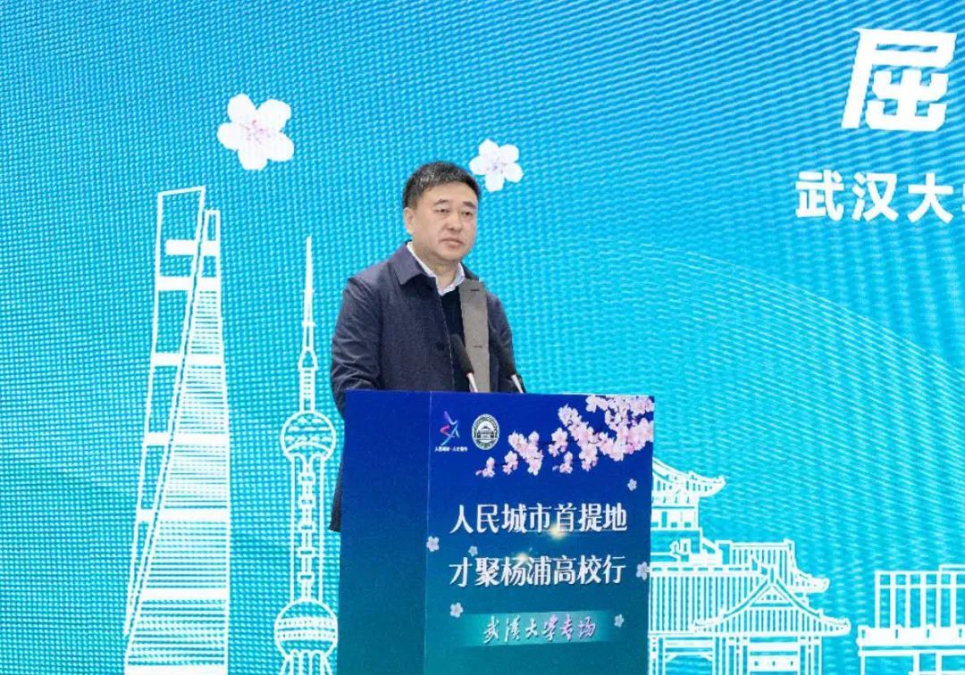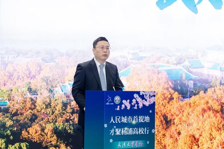 周嵘在主题宣介中说,近年来,杨浦深入践行人民城市理念,奋力书写杨浦“三篇大文章”,创新浓度、产业厚度、人才高度加速跃升。杨浦承载着“四个百年”的深厚底蕴,曾贡献全国1/20工业产值,孕育了复旦、同济等10所高校,更见证《共产党宣言》首译、《义勇军进行曲》创作等红色记忆。如今,在人民城市理念引领下,曾经的“工业锈带”加速蝶变为“创新秀带”,数字经济产业连续5年两位数增长,成为新质生产力发展标杆。围绕“1+2+3+4”现代化产业体系,杨浦集聚了抖音、美团、B站等8000余家数字经济企业,拥有占上海50%的7家国家级大学科技园。上海数学与交叉学科研究院落地运行,74名院士、400余人国家级及600余人市级海外高层次人才在此深耕,是一片成就事业的高地。围绕“15分钟便民生活圈”,杨浦积极筹措25000套安居房源,创新设置女性、宠物专属楼层。大学路街区融合网红经济与创投生态,年均举办超百场青年活动,18万大学生与4万互联网从业者共筑杨浦Z世代的“潮流宇宙”。“杨浦将延续与武大的‘求新’对话,以三区联动、宜居宜业的城市生态,助力青年人才‘进得来、安得下、能成业’,在人民城市建设中成就精彩人生。”