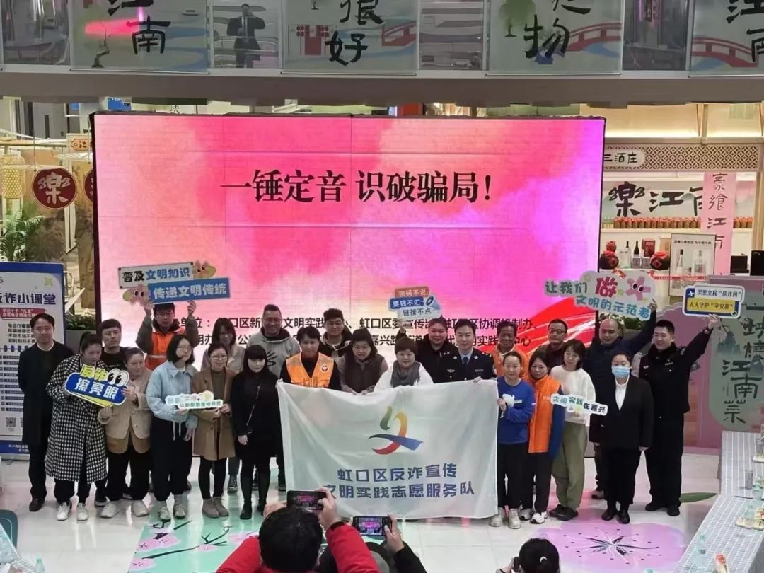 2024年,虹口区新时代文明实践中心、区文明办、区公安分局精心策划并组织了300余场形式多样的宣传活动,线上线下同步推进,累计覆盖30余万人次。2025年,将进一步依托新时代文明实践阵地资源和虹口区反诈宣传文明实践志愿服务队,将更多优质活动送进商务楼宇,为白领群体量身定制文明实践活动,提供实实在在的收获和体验。