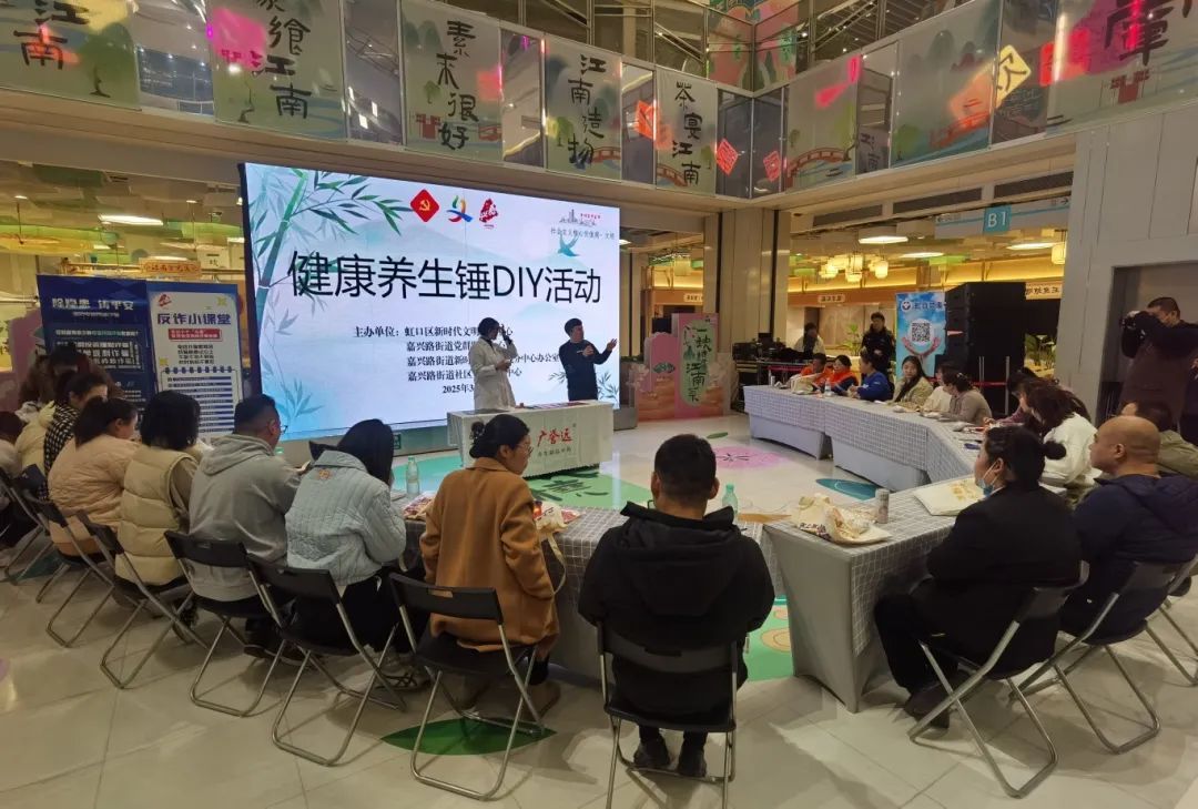 3月12日中午,虹口区新时代文明实践中心、区文明办、区机制办、区公安分局联合嘉兴路街道新时代文明实践分中心在上滨生活广场新时代文明实践特色站举办了一场别开生面的文明实践活动——“一锤定音、识破骗局”。活动通过“微宣讲+手工制作”的形式,将反诈知识和健康养生送到白领身边,吸引众多楼宇白领积极参与。