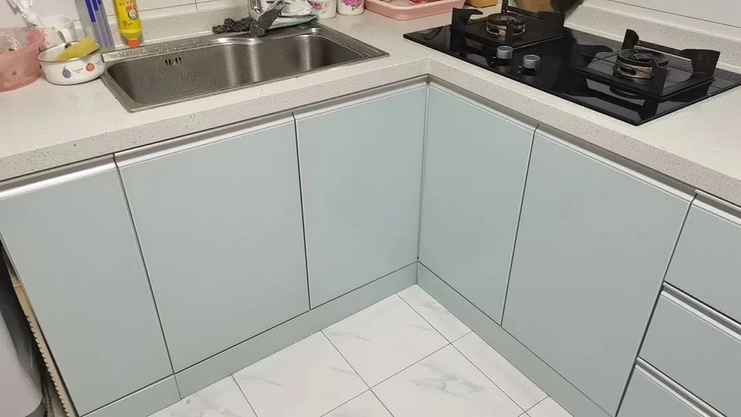 此外,厨房原本的橱柜把手位置比较低,老人开柜需要弯腰,比较累。考虑到刘老伯年事已高,在更新改造过程中,橱柜被设计成了内嵌式把手。改造完成后,刘老伯家的厨房焕然一新,不仅地板光滑了,而且不需要弯腰就能轻松开门。