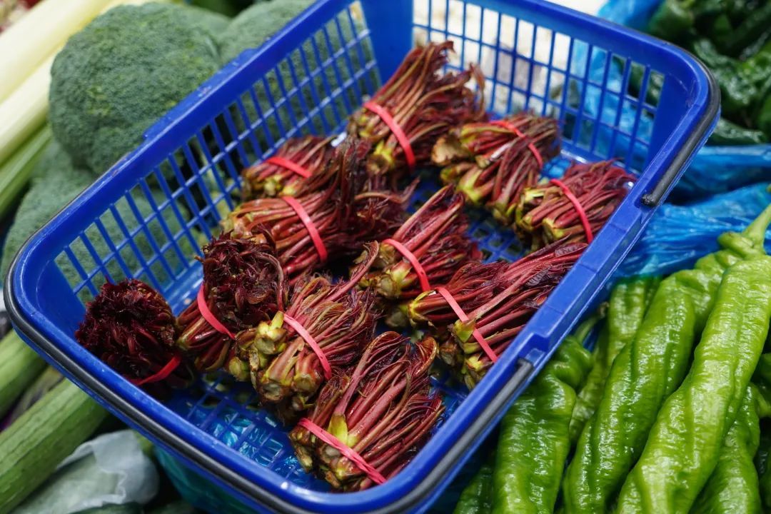 香椿作为春季特有的美味,以其独特的香气和鲜嫩的口感,常被称为“吃春第一鲜”。走进马陆戬浜菜场,摊位上的香椿一把把扎得整整齐齐,紫红色的叶片在灯光下泛着油光,显得格外诱人。摊主李阿姨介绍:“香椿这段时间特别受欢迎,前两天要卖到80元一斤,现在逐渐降到65元一斤”。