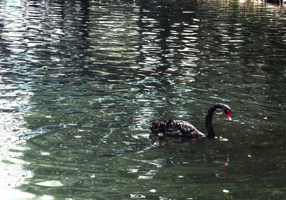 今日申城天色偏灰,出行体感冻嗖嗖。尽管今日天气寒凉,上午十点,徐家汇公园内市民游园热情却未减。汇金湖边,不少游客在闲坐观湖,或是三两结伴闲侃,或是观赏湖中的锦鲤。天气虽转冷,但湖畔景色宜人,杨柳抽出绿芽随风摇曳,黑天鹅们在湖面悠闲游弋,吸引了众多游客驻足观赏。