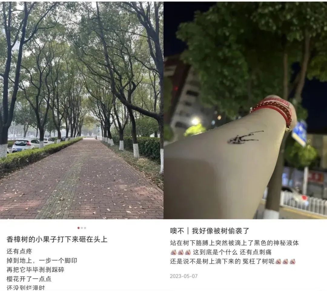 近期出门要小心,尽量不要穿着浅色衣服,不要长期待在香樟树下,避免收到这些“黑色炸弹”的问候。