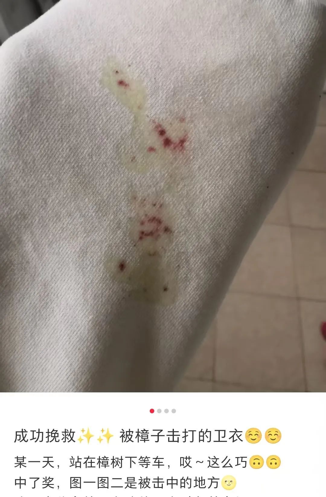 原来是香樟树果实被车辆压过留下痕迹,且难清除,再加上当天下雨,导致路面更加湿滑。近期香樟树果实进入掉落期,叠加阴雨天气,骑车路过这些路段,一定要注意安全。