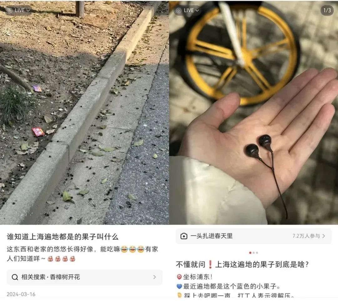 这些“黑珍珠”是香樟树的果实,即樟树籽。中国林科院林木遗传育种专业博士研究生导师、亚热带林业研究所从事林木种质资源研究的姜景民研究员表示,每年深秋后,樟树果实由绿色转棕黑色紫黑色,之后陆续成熟脱落,尤其是春节前后到近期换叶季,樟树籽大量熟落,还伴随着大量落叶。