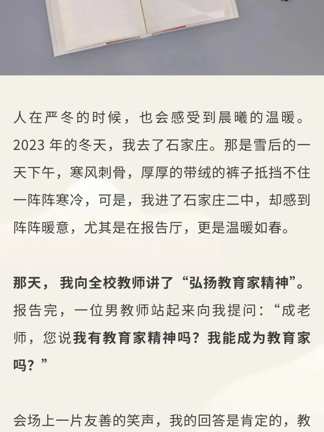 《中共中央国务院关于弘扬教育家精神加强新时代高素质专业化教师建设队伍的意见》指出:“到2035年,教育家精神成为广大教师的自觉追求……”