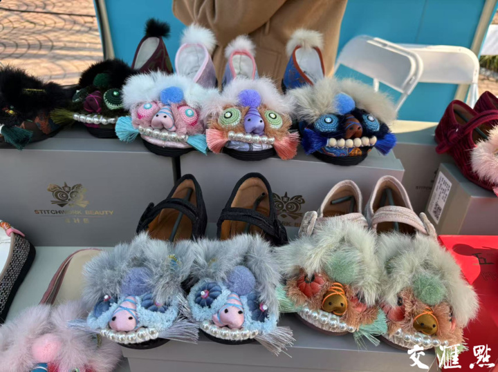 萌萌的虎头鞋五彩斑斓,搭配珠饰等配饰,让人爱不释手。市民章女士左挑右挑,最终给女儿选了一双萌趣十足虎头鞋。“这鞋子既传统又时尚,孩子一定会喜欢。”章女士说。南京虎头鞋制作技艺传承人吴丽花正在摊位前忙碌着,她告诉记者,这些虎头鞋都是在传统手工布鞋的基础上,选用不同材质的面料,通过颜色的搭配,让虎头鞋在继承传统手工技艺的同时,更符合现代穿搭,也更符合现代人的审美。“我们希望通过自己的创新,让虎头鞋重新走进人们的生活。”