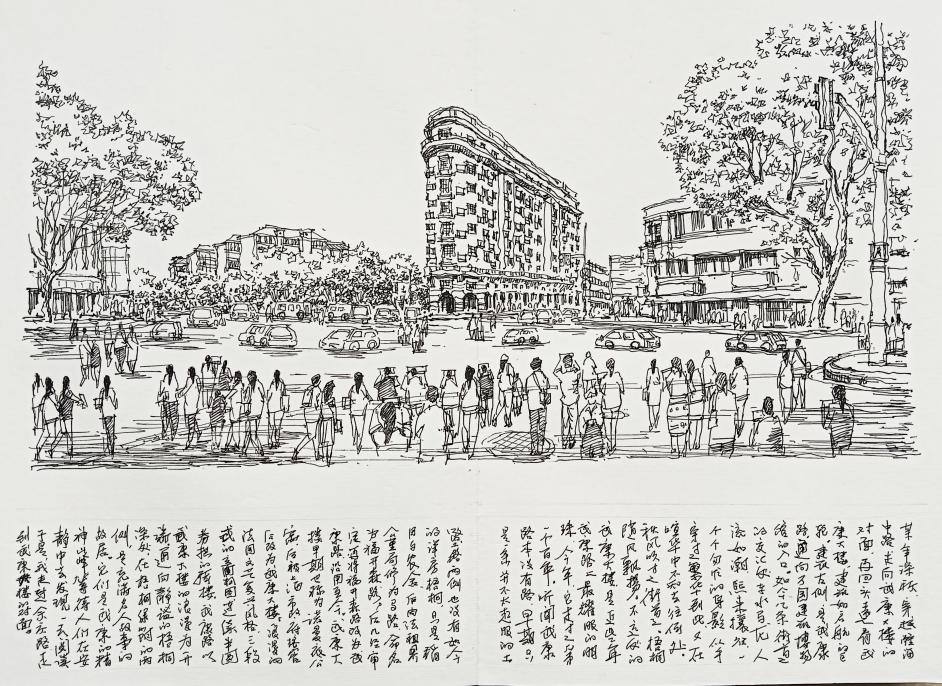 3月14日,凉城新村街道社区会客厅又迎来了一场新展览,画展甄选青年画家刘开海、黎军壮、池杓霖数十幅速写画作,他们以独特视角记录了十余年来的上海变迁史,用速写与慢画勾勒出上海的建筑风貌与人文情怀,通过线条笔墨留住曾经的上海。