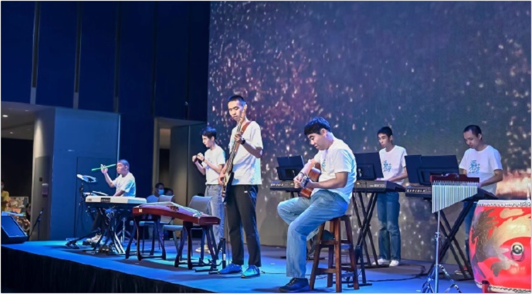 以前,他总是怯生生地躲在角落,在经过老师们的引导和与队友们的磨合后,小岱可以大大方方地站在舞台上,与伙伴们一起演奏。