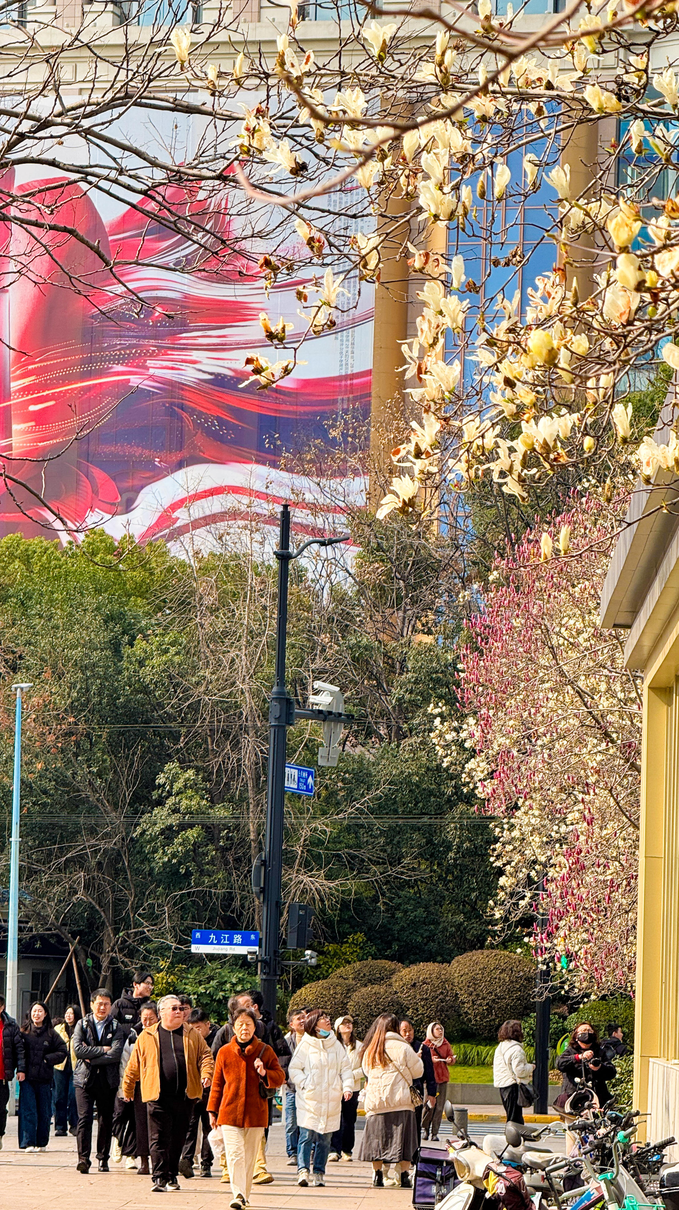 春日黄浦,外滩的郁金香绚烂夺目,人民广场的白玉兰在春风中摇曳。漫步黄浦城区,满眼皆是花团锦簇,处处皆景。街头巷尾,樱花、玉兰、海棠竞相绽放,与百年建筑相映成趣,空气中弥漫着淡淡花香,行人穿梭如织,中外游客纷纷驻足拍照,记录下这满城春色。